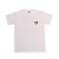 Premium heavy weight work pocket t-shirt with discharge front print and back print.