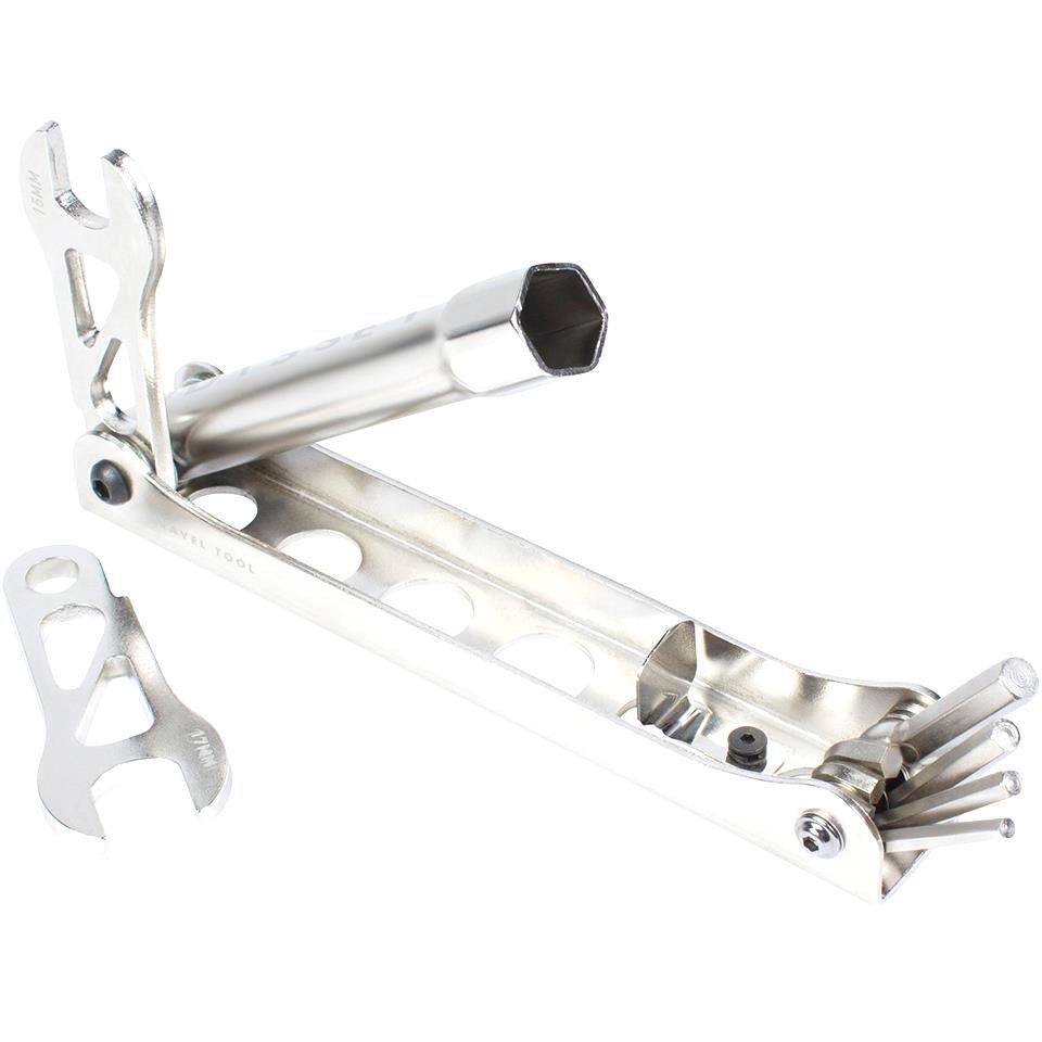 Odyssey's first multi-tool includes all the key bits to assemble and disassemble your bike on-the-go. Includes a pedal wrench, 4, 5, 6 and 8mm hex wrenches and a 17mm socket with an integrated storage compartment. It's light and easy to carry, but big enough to allow you to actually tighten everything down properly.
