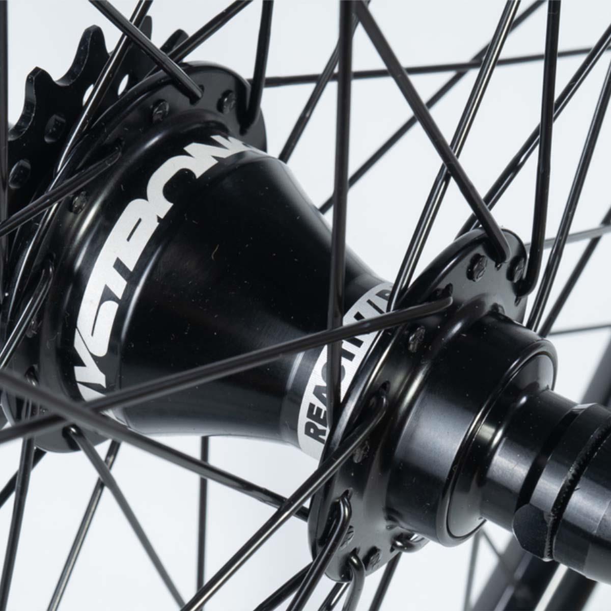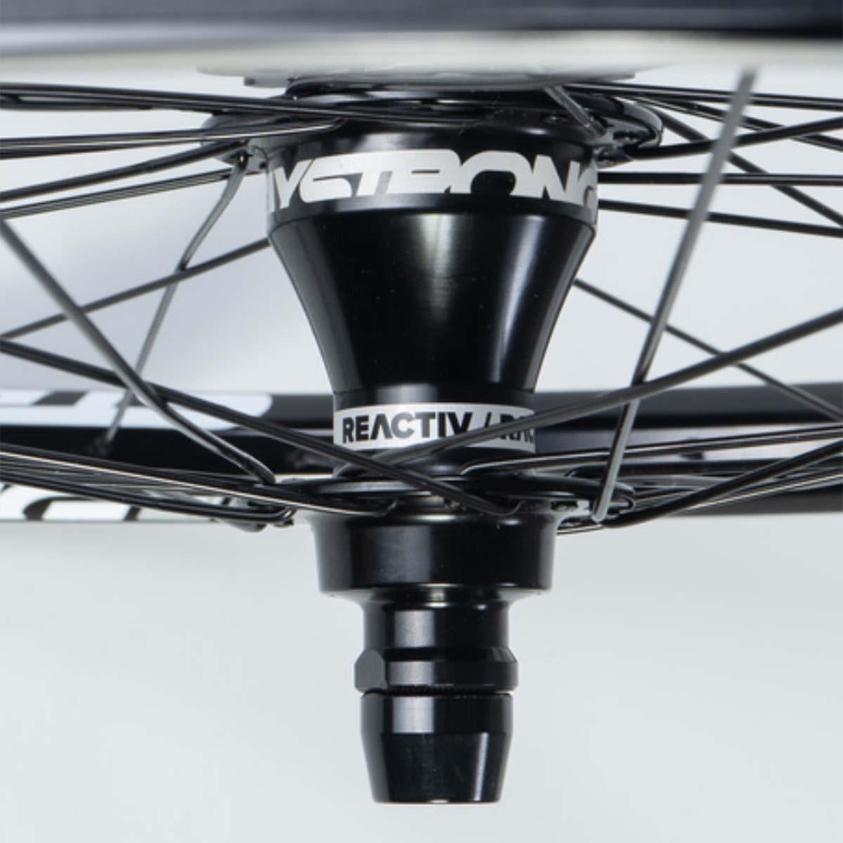 The Stay Strong Reactiv Rim features an aero profile design with a pinned joint and a CNC machined braking surface on the rear rim with Stay Strong cut of graphics. The Raeactiv rim is laced to the sealed alloy Reactiv hub with 16T cassette at the rear with 6 pawls and 180 points of engagement.