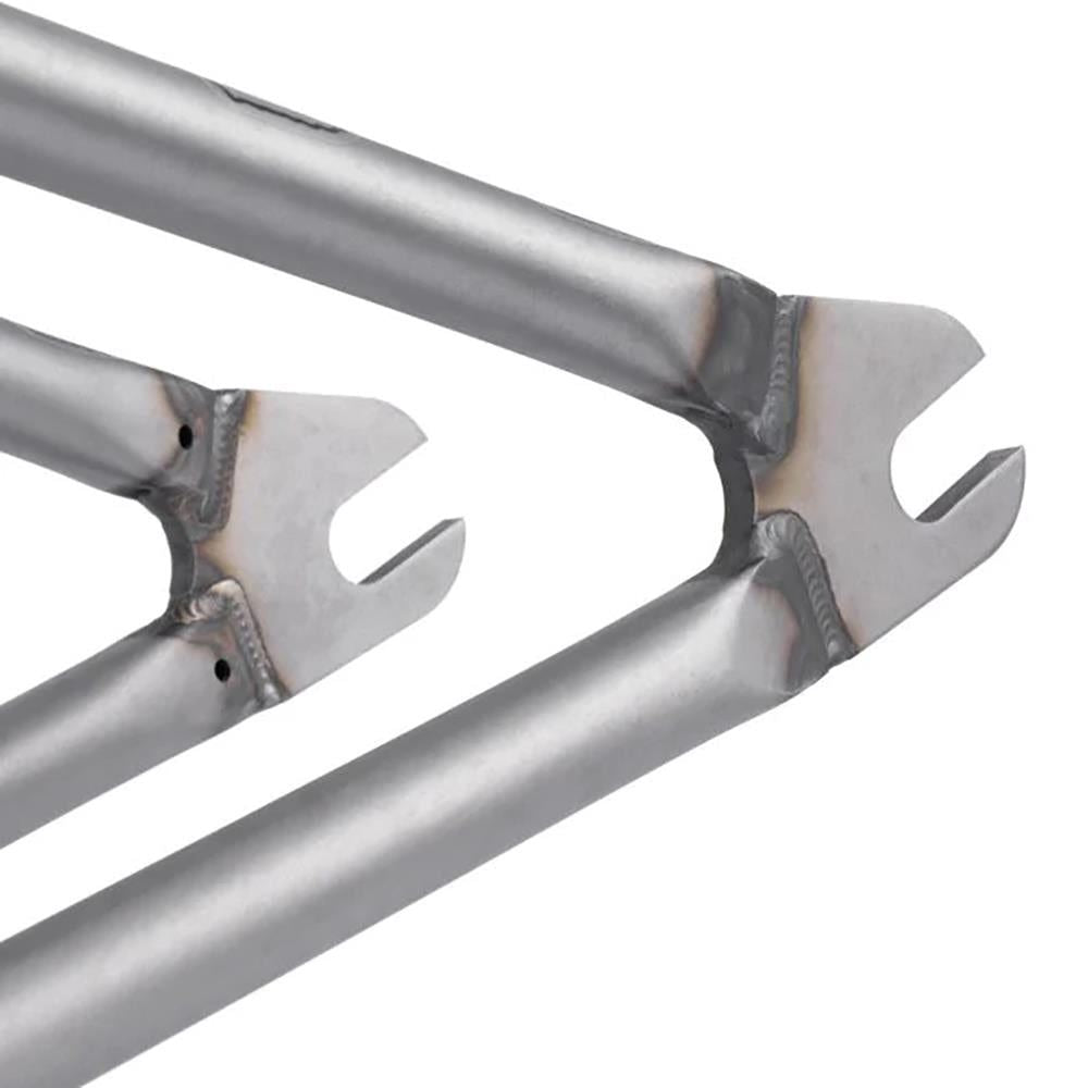 Its full 4130 chromoly construction utilises double butted top and down tubes, gusseted reinforcements at the head tube and a unique chain stay join for maximum strength and rigidity. It boasts a super short 12.9" rear end length and a lower standover height to accomodate growing riders.