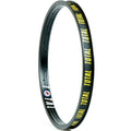 BMX rim from Total. The Spitfire rim bridges the gap between crazy narrow rims that don't work with modern wider tyre sizes and the ultra wide rims that are very heavy. Tyres will sit on these rims securely, the rim is strong and light enough to keep you flying