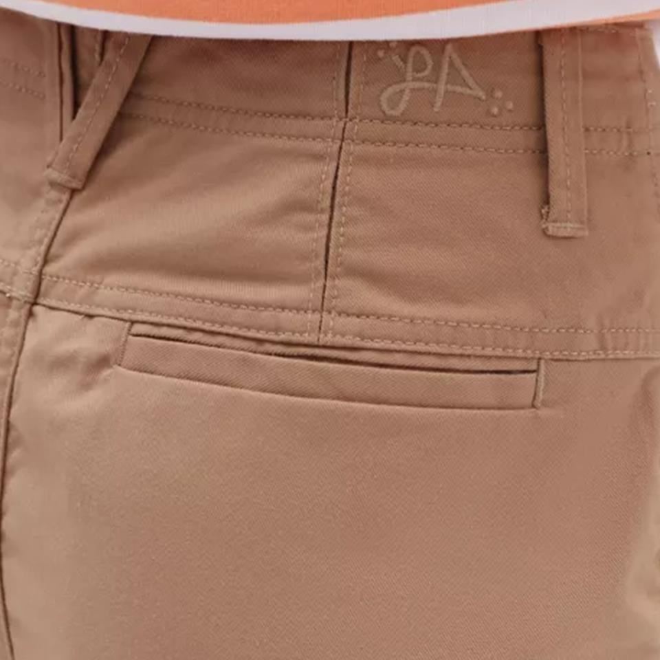 With a focus on enabling style and creativity, the Lizzie Armanto Skate Chino is a heavy twill, high-waisted chino pant featuring a timeless combination of classic chino styling and comfortable stretch. Unique design features on this relaxed pant include the mesh vents at the back darts, a novelty vent stitch at the inseam, an interior mesh waistband and pocket bags, and a Vans flag label at the hem for added branding when legs are cuffed. Lizzie’s signature embroidery stamps the back waistband to round out this easy-wearing style.