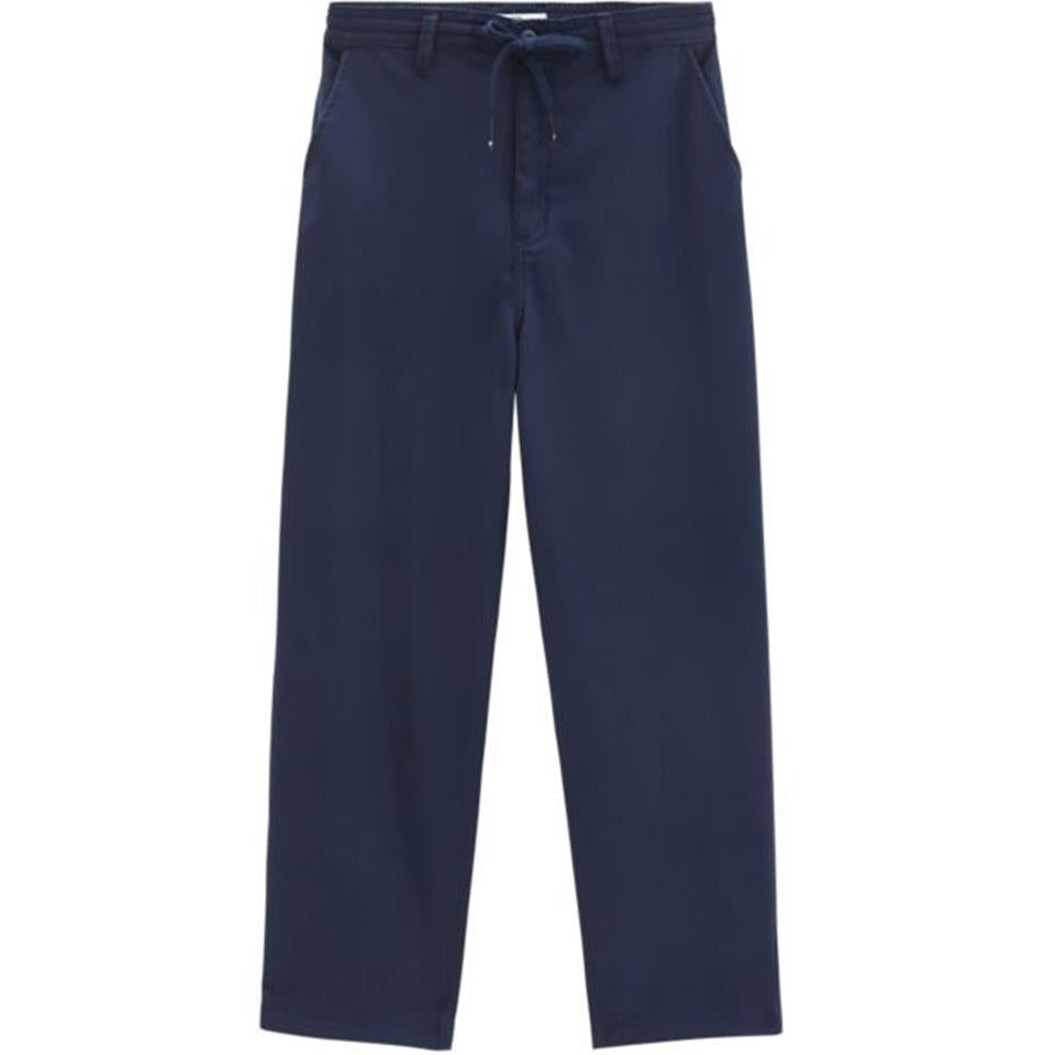 The Vans Skate Elastic Pant features a relaxed fit with a high waist elasticated back and drawstring. It has slit welt pockets on the sides. 80% polyester, 20% Viscose.