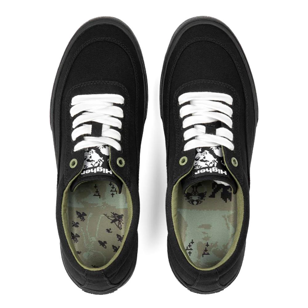 With its minimal clean aesthetic and low profile, reinforced with toe and side panel construction details, the Higher Crypt shoe features a beautifully stitched woven label with original artwork, and two fat lace options from the box. The lining of the Crypt is trimmed in synthetic matte leather and canvas.