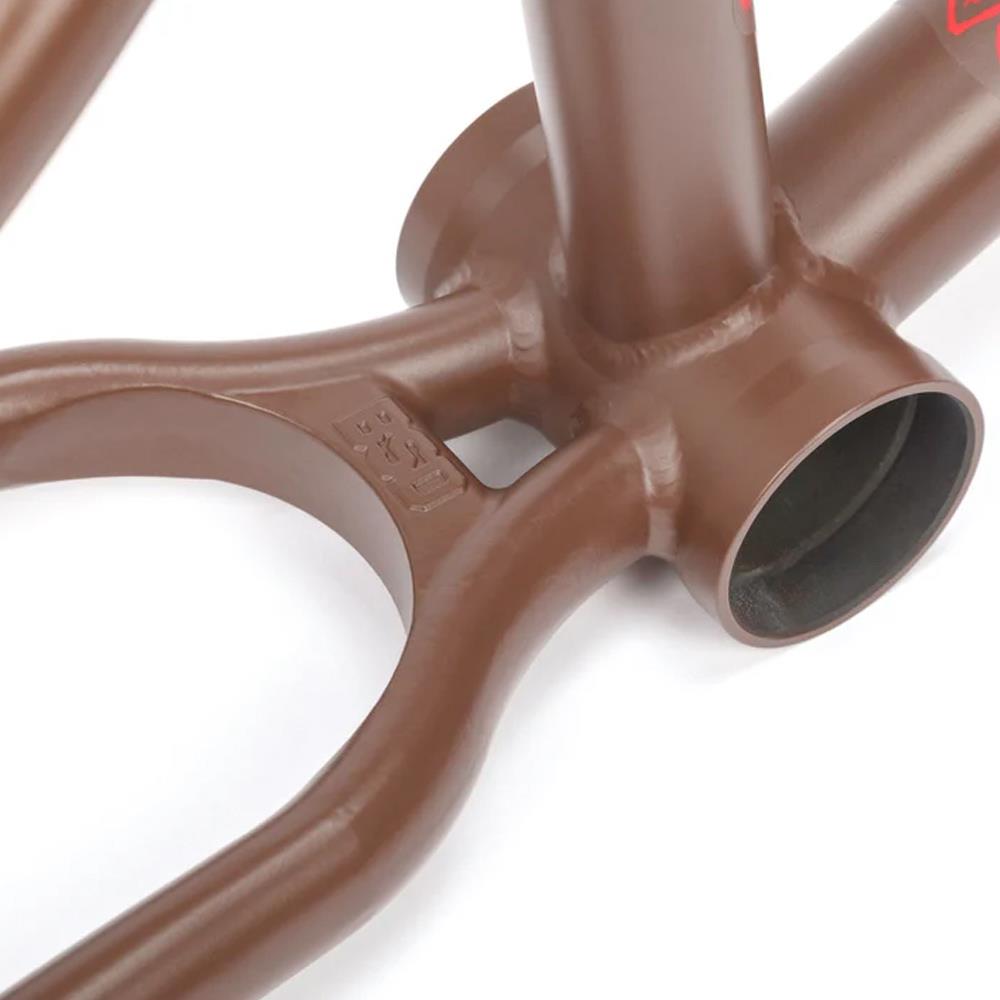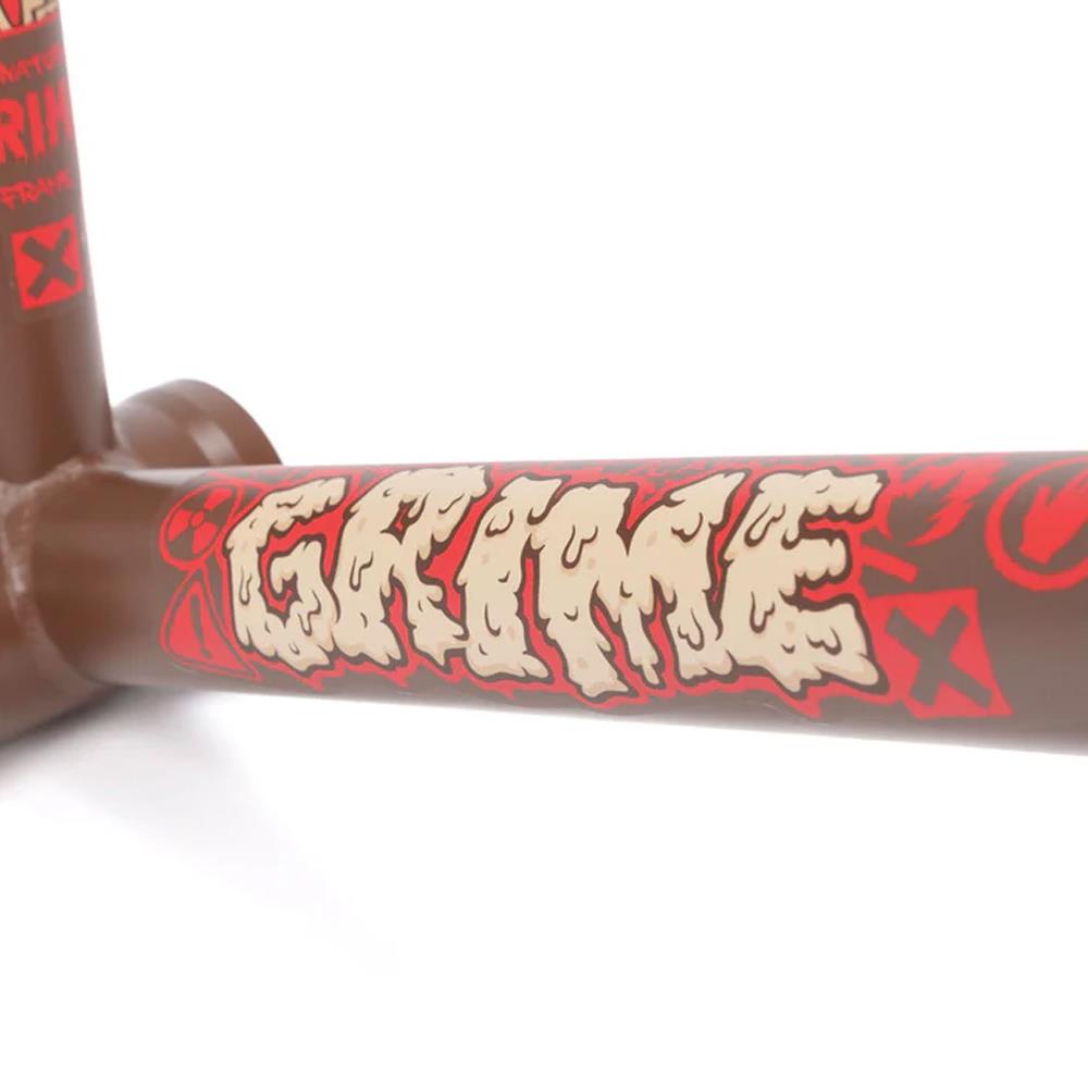 The Grime frame has an invest cast chainstay yoke which creates more clearance for the tyre for when your wheel is slammed. Also because this part is cast and heat treated it strengthens the rear end of the frame by stiffening it up.