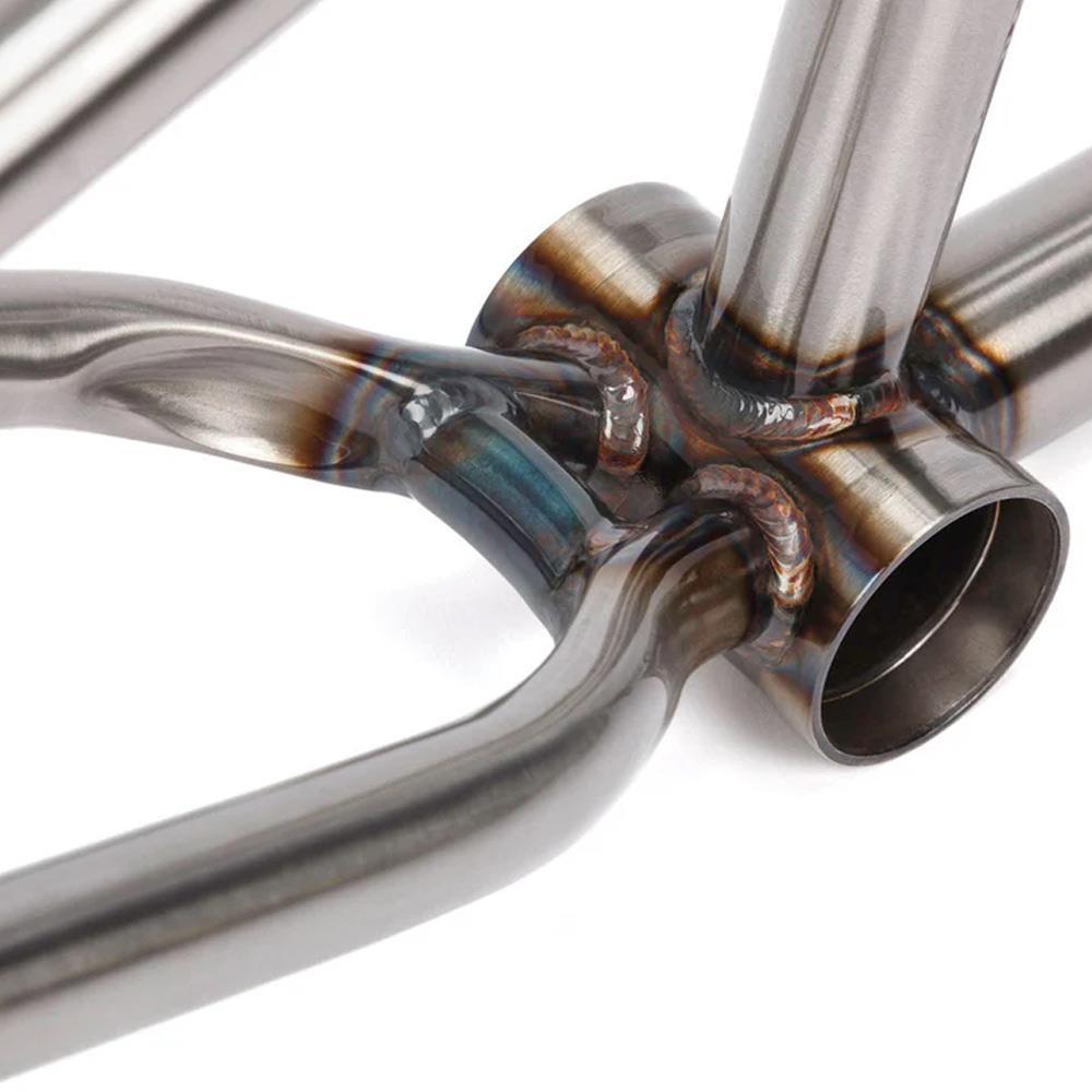 If you haven’t checked it out yet, we highly recommend checking it out - it’s a must-see! The Steeze frame is designed with a 75.2° head angle and a forward-angled 72° seattube angle, which helps with pinching the seat during barspins.