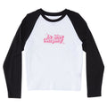 Standard fit cotton jersey fabric long sleeve raglan with screen print on chest.