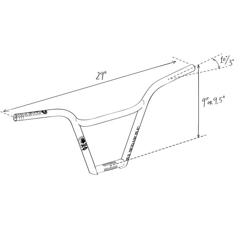 The Fuego is built for strength with its seamless 4130 CrMo heat-treated tubing with Devon's preferred upsweep and backsweep. Coming in a 9" and 9.5" rise options both sizes have Devon's preferred 10° backsweep and 3° upsweep.