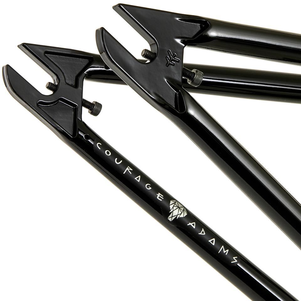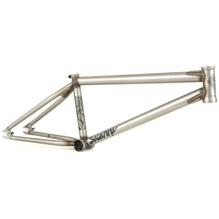 The Courage Adams signature Savanna frame sticks with its original geometry, but utilises new tubing specs that help reduce the overall weight of the frame without sacrificing any of the strength. The frame features internal and external gussets, multi-butted and tapered tubing, an Investment Cast seat post clamp with the Horizontal Cut System and Investment Cast Dropouts with integrated chain tensioners. It is brakeless, so there are no mounts or guides.