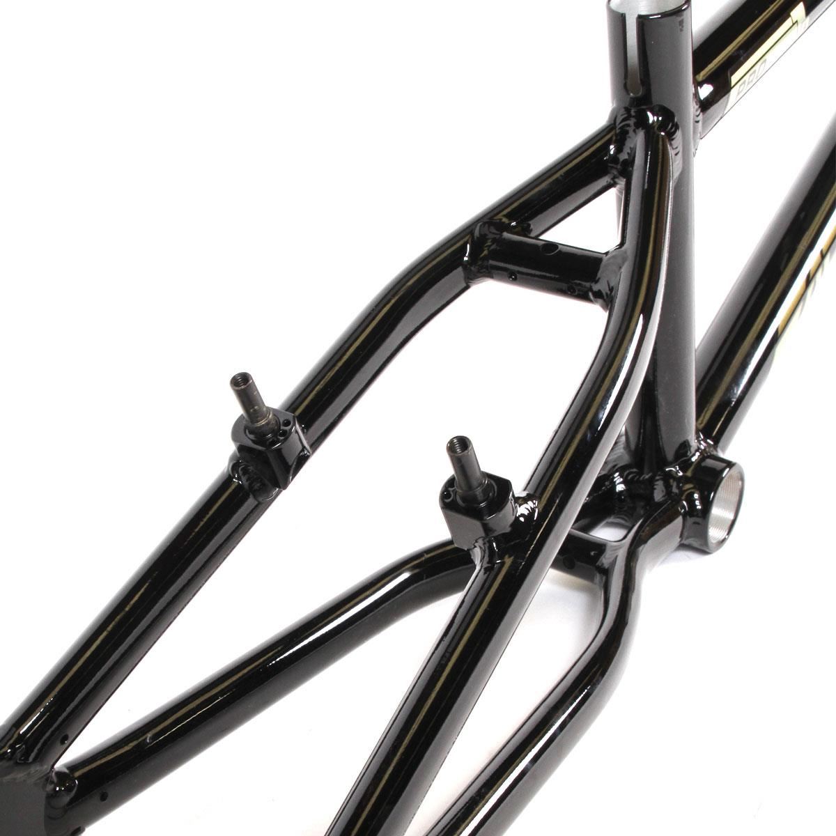 A Lightweight and dependable Pro sized BMX race frame best suited to adult riders who are looking for affordable race bike to get them around the track fast. The Pro sizing is best suited to adult riders up to 5ft8”. The Jet Accelerator Pro Frame is a lightweight and durable 6061 Aluminum frame with race specific geometry, reliable integrated headtube and a striking decal package. If you’re an adult looking for an entry point into BMX racing or a race bike to tear around the local track or pump track then this frame is for you.