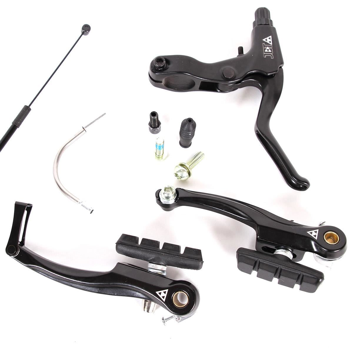Contains everything you need to install a V-brake on your Race bike; including the V-brake calliper, V-brake Lever, Slick cable and all mounting hardware. This kit is sized for Pro sized BMX race bikes or larger.