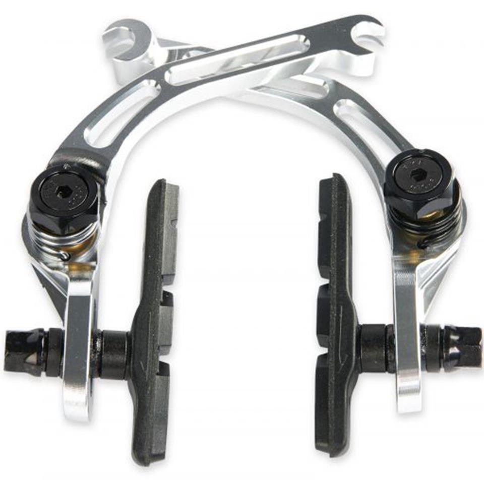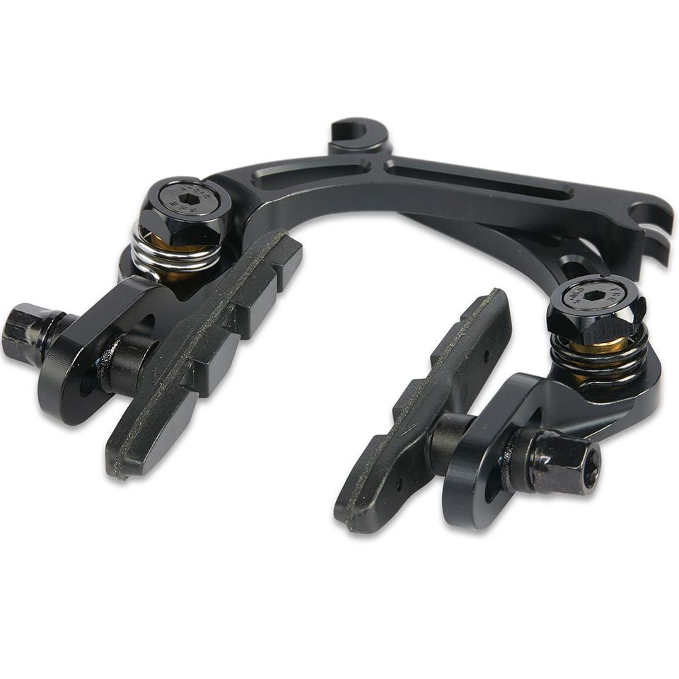 The Mankind Truth U-Brake is lightweight, has plenty of tyre clearance and is front brake compatible. It is CNC machined from 6061T6 alloy and includes an alloy cable hanger, straddle cable & knarp and long black brake pads.