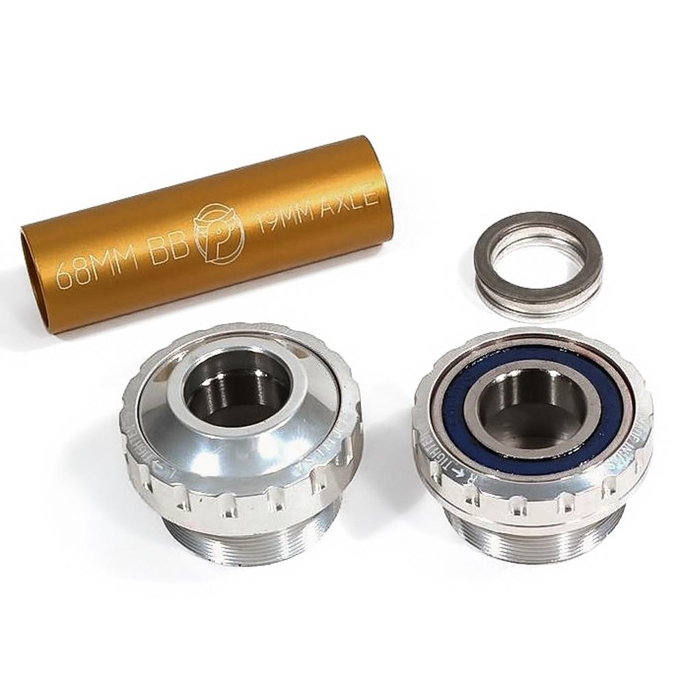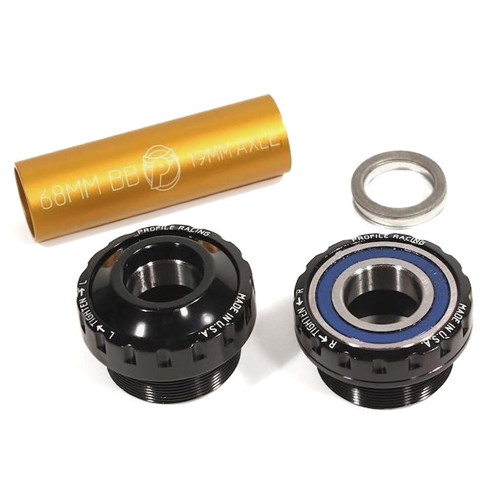 Outboard Euro BB kit from Profile. Using larger and stronger bearings than any other Euro BB available. The cups are machined in the USA from 6061 aluminium. All spacers & washers included. Fits Profile and other 19mm style cranks.