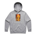 The Sabbath Wheels 'Pyromaniac' grey hoodie is a relaxed, oversized fit with dropped shoulders. DTF print, heavy weight, 400 GSM. CVC Fleece 80% Cotton 20% Polyester. Pullover hood, inset sleeves, self-fabric hood lining. 2x2 cuff and hem ribbing.