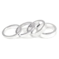 6061 T6 alloy. 3mm, 5mm, 8mm, 10mm spacers for 1 1/8 forks. Available in black, cyan, red, high polished, purple. Features: 4 spacers per pack.