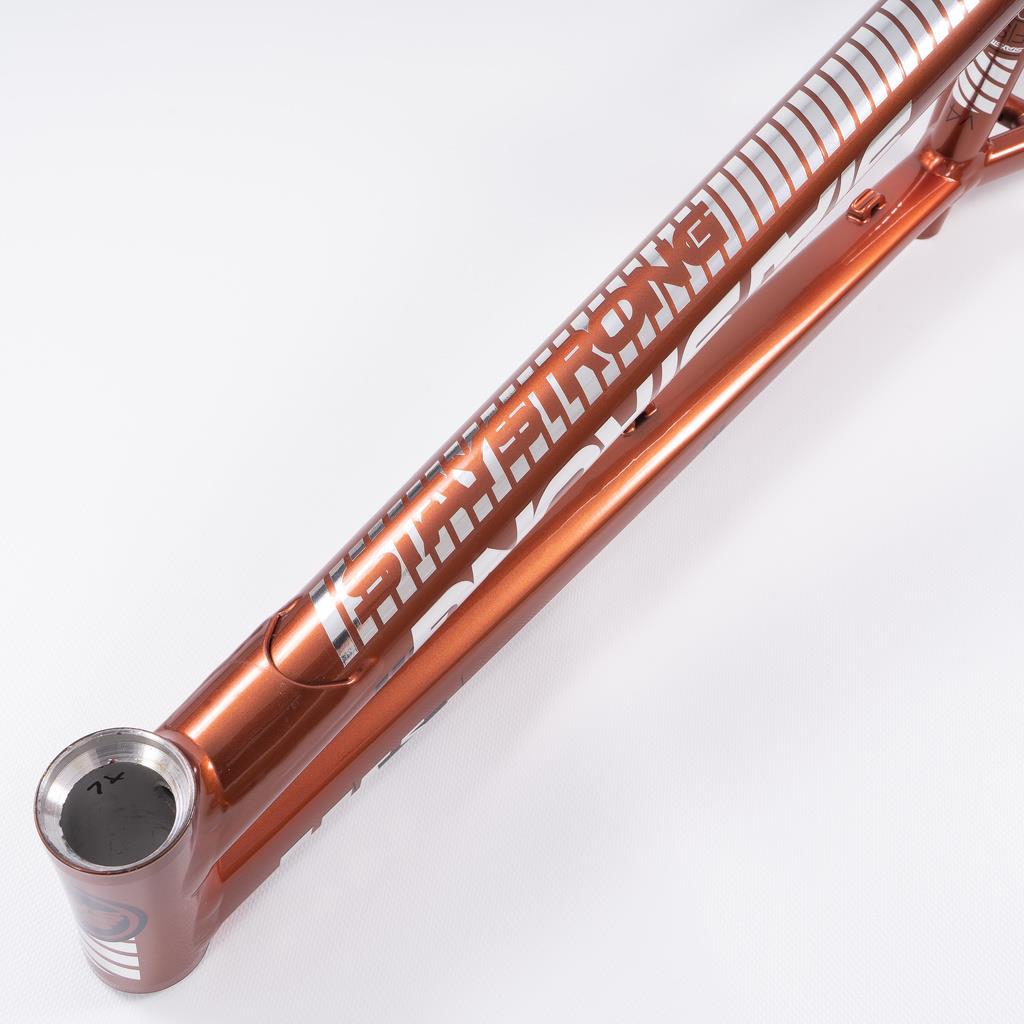 The frame features triple butted down & toptube, double butted chain & seat stays adding strength while saving weight. We have once again increased the frames stiffness for power transfer and speed. The smooth welds also help give the all new chrome effect water decals and graphics a fresh clean look.