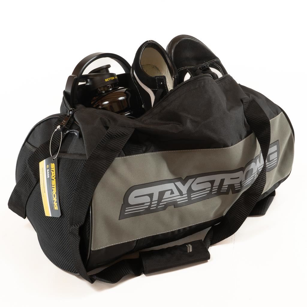 The Stay Strong Word Duffle bag is a classic staple. Sized for everyday use and travel and features long carry handles and a removable shoulder strap. Stay Strong Word logo on the side and the classic Icon logo on one end. End mesh pocket compartment for smaller items and a side zip compartment for keys and phone.
