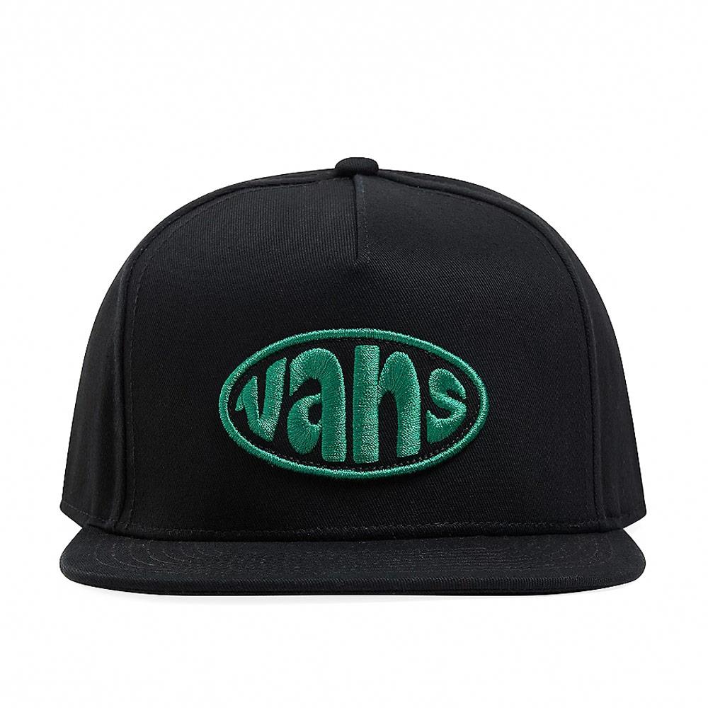 It features a snapback closure, retro Vans logo merrow edge patch on the front, and direct embroidery on the side.