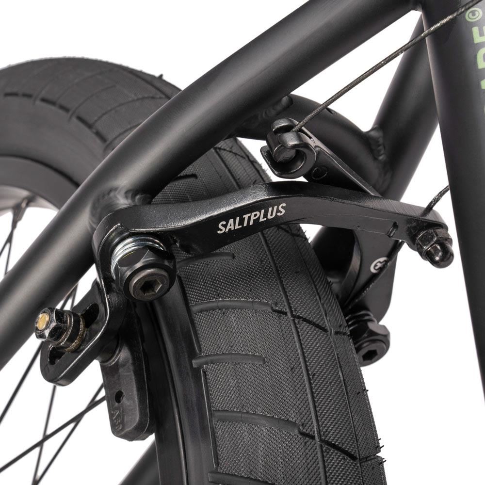 An aftermarket parts kit from Salt, SaltPlus and Eclat get the Arcade feeling like a pro level ride. It's a super dialed BMX that rolls on Salt's super wide 36mm Valon rims, laced to sealed hubs front and back with SaltPlus's Sting tyres wrapping things up.