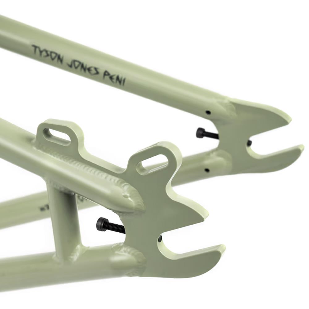 The Chaos Machine Frame features a long and stable geometry, combined with Wethepeople’s legendary frame-building technology making it one of the meanest and toughest rigs in the game. Tyson isn’t scared to go fast and hit the mainline with some serious speed so his signature frame is equipped with mounts for a disc brake (and a regular u-brake) making it the first frame of its kind and perfect for riders needing some upgraded stopping power.
